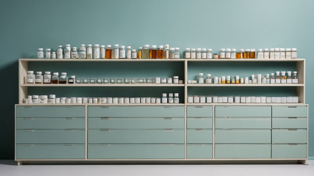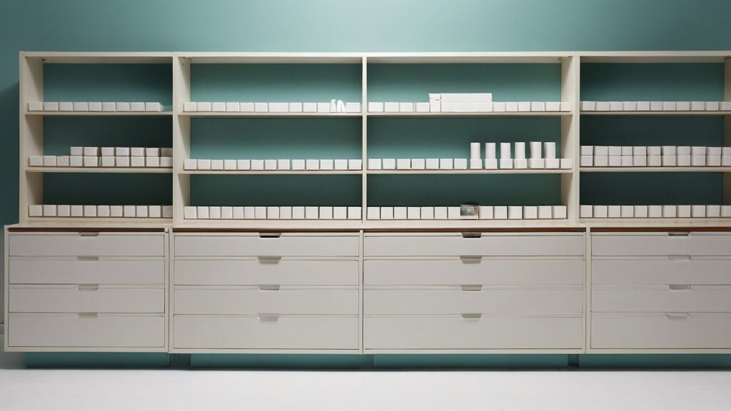 Cajoneras modulares: Adaptables a cualquier espacio y necesidad, con cajones de diferentes tamaños y compartimentos para una organización óptima de sus productos farmacéuticos.